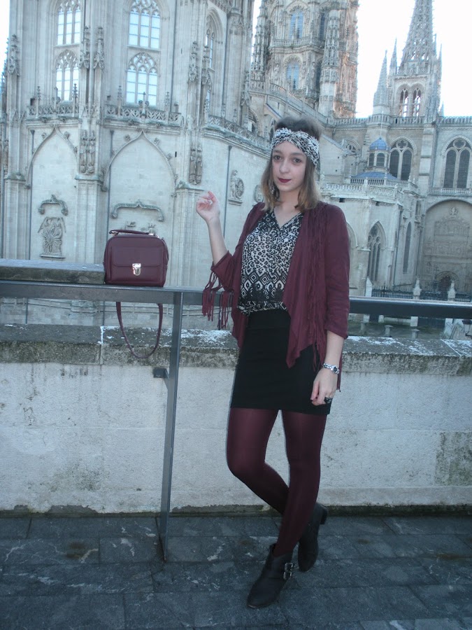 Hoy os traigo un post un poco diferente en el que os voy a recordar otras formas de combinar esta chaqueta granate de flecos (si pincháis en la foto os lleva a ver el post al completo).