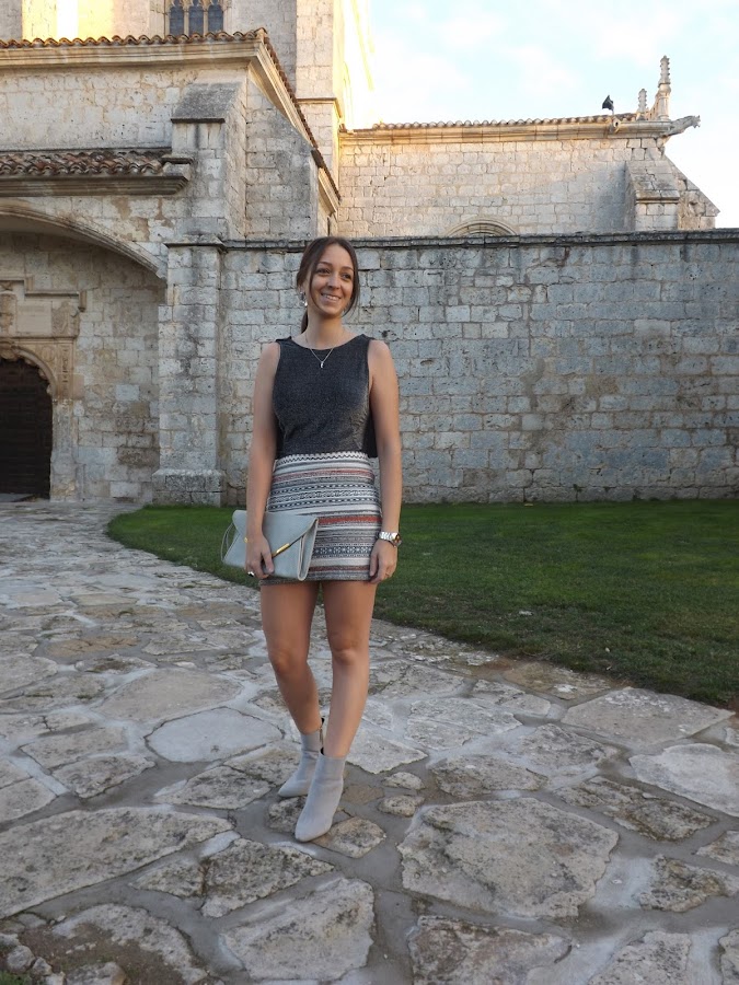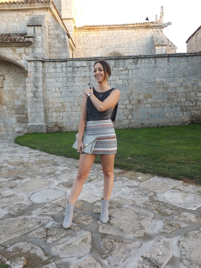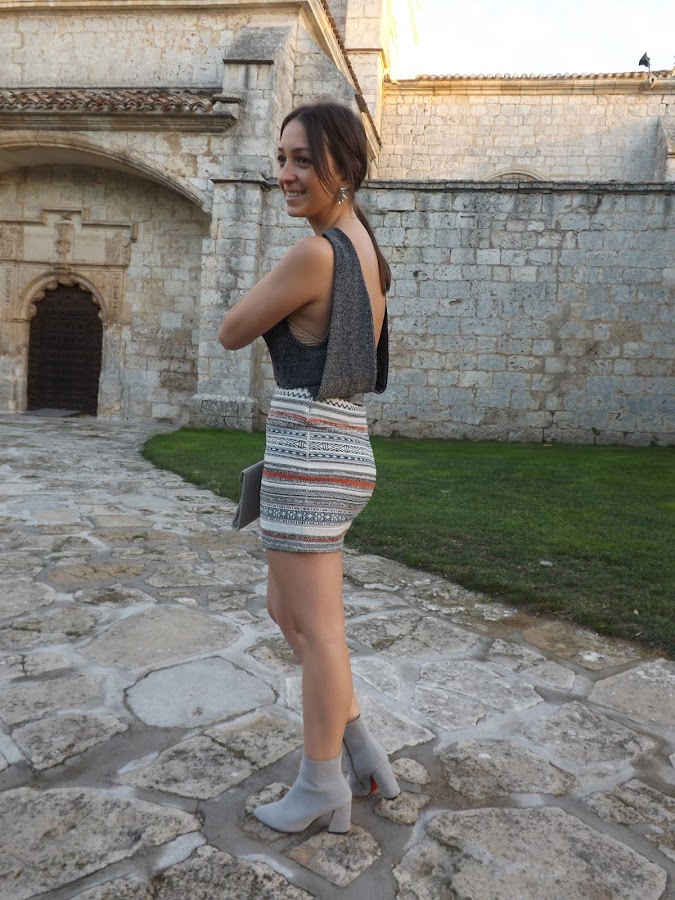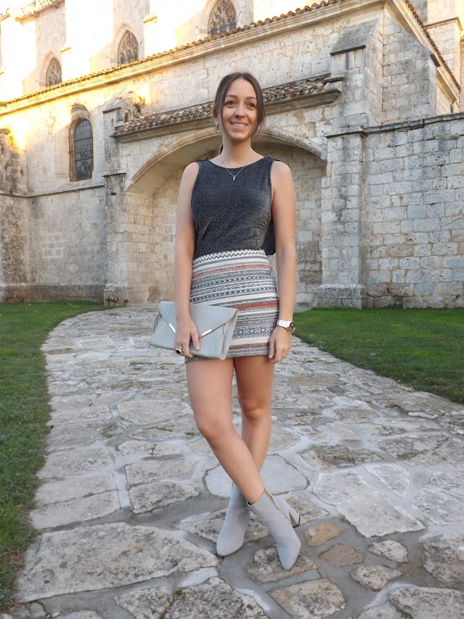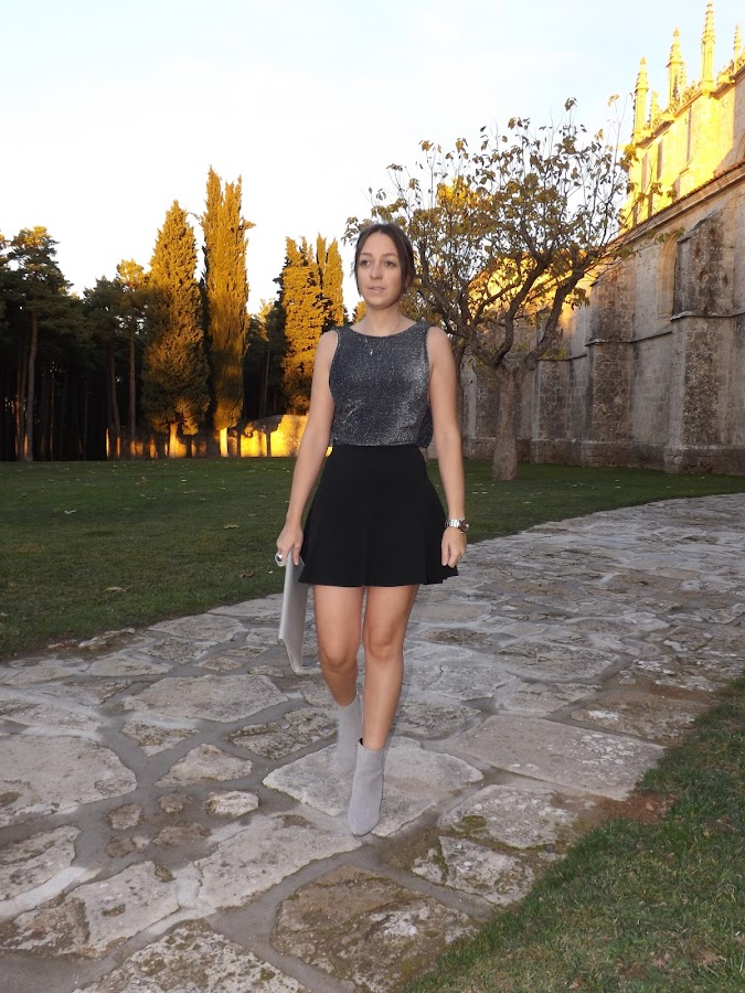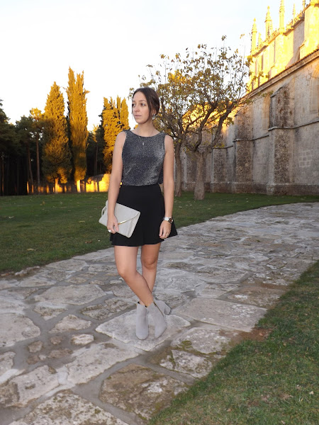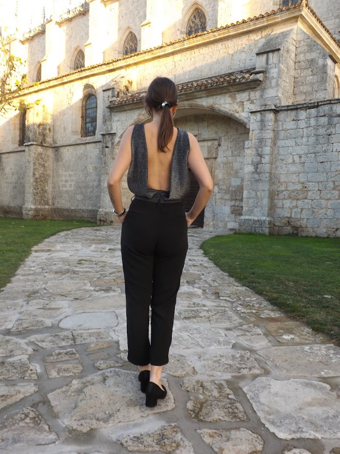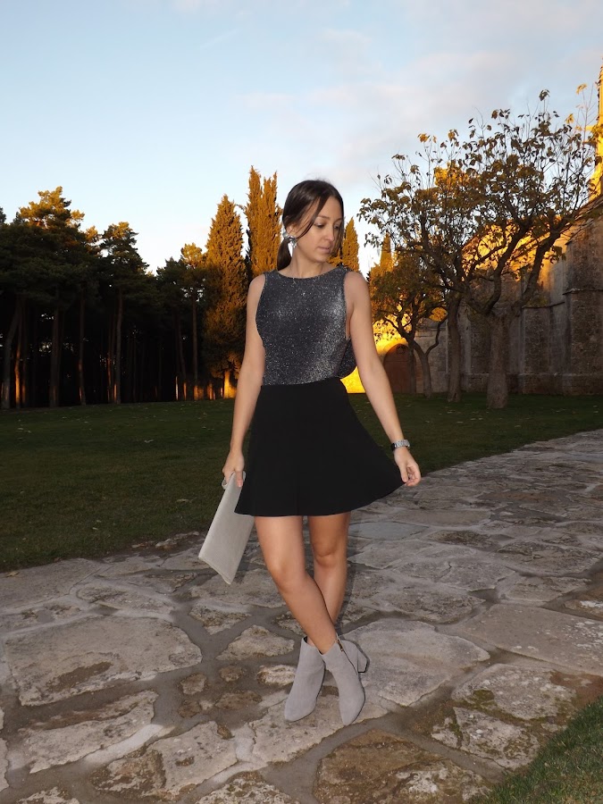 La prenda a combinar es este body plateado del año pasado de Bershka con escote trasero (aquí podéis ver otra forma de combinarlo con falda midi).