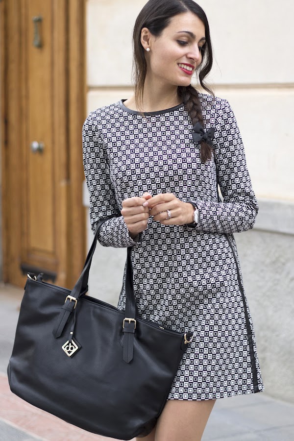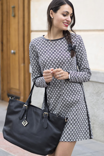 Hoy os presento mi nuevo vestido de MISSING JOHNNY! Ideal para ir cómoda, calentita y mona cualquier día de la semana. El blanco y negro siempre es un acierto y cuando lo vi me enamoró tanto el corte, como el tipo de tejido y su estampado. Lo he combinado con mis stilettos negros de ALEX SILVA y mi maxibolso de CAROLINA BOIX, aunque también me encanta para llevar con medias tupidas y botas negras de forma más informal!