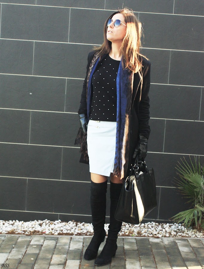 Mi propuesta se basa precisamente en el último punto, el pañuelo con diferentes estampados juega un papel importante sobre el jersey de topos, espero que os guste!!!!