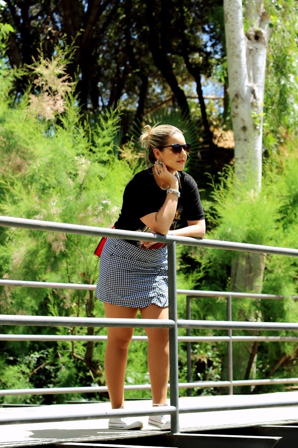 Today I show you a new outfits that its different at the kind of outfits that I usually show you in the blog because its a mix of styles. I wear my gingham skirt with a ruffle, which is very feminine and sweet, with a rocker tee of Rolling Stone that its a trend garment this season. The accessories of the outfit were my Converse and my red bag. A casual chic outfit with a rocker touch that I like wearing during the weekend!