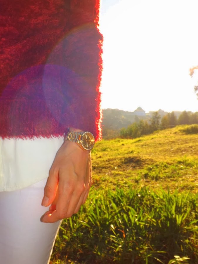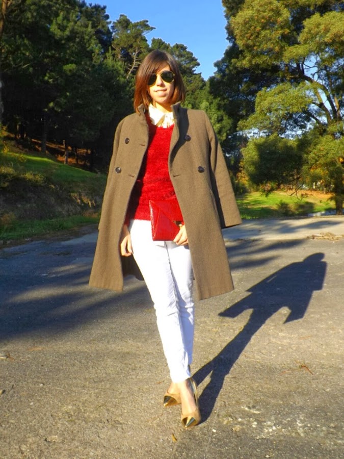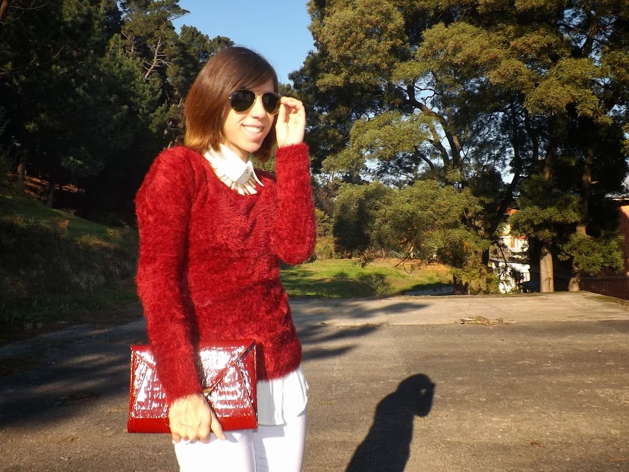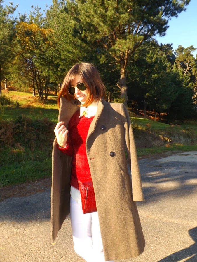 I have combined it with my fur burgundy sweater, I love how it combines with the camel. To give to the outfit a lot of light, nothing beats better than white pants.
