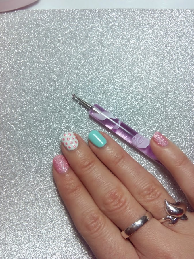 Además, ¡¡el dotting tool siempre da mucho juego!! Cuando no hay mucho tiempo para manicurear, un simple nail accent con puntitos queda ideal :)
