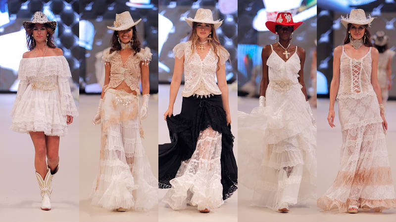 Sus prendas de aire más romántico y femenino entremezclan la vaporosidad y la rigidez con encajes, transparencias lográndose fundir en la misma piel. La gama de colores que han usado pasan desde el blanco roto hasta los ocres y champán, evocando a la mismísima fiesta.