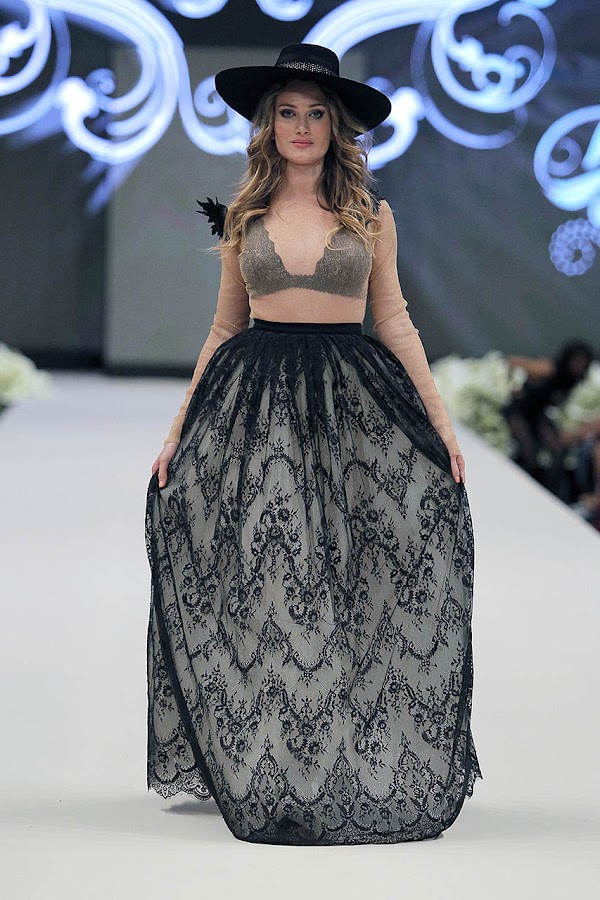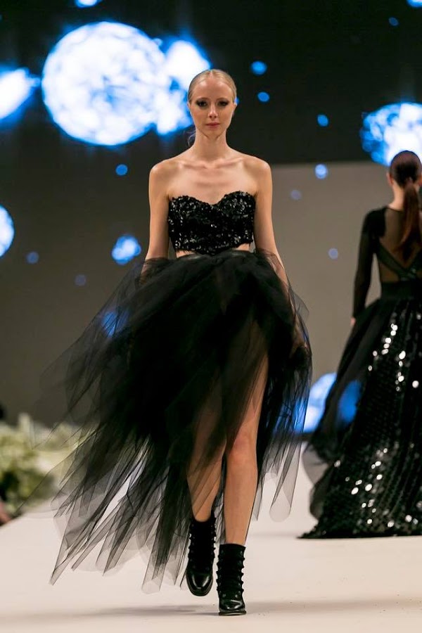 Ana Belén Alfonso nos propone una versión barroca y romántica a base de transparencias, bordados a mano combinados con cristales. Los colores de su nueva colección oscilan entre los blancos hasta los negros, pasando por los nude y los ocres.