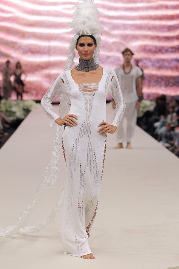 Sus prendas de algodón, viscosa y lúrex con calados, deshilachados (con hilos dorados y plateados) y transparentes son características de esta firma de aire bohemio y guerrero, que incorpora el punto como material. Entre sus prendas claves encontramos los monos grandes con capuchas y vestidos largos con calados laterales en los brazos. Las modificaciones en la estructura y el diseño de las prendas que han añadido a esta nueva colección la hacen especial para personas seguras, con decisión, luchadoras y sobretodo, más atrevidas ante la vida.