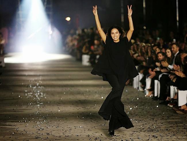 Trabajando con Ellery para abrir la Semana de la Moda de Sydney.Kym Ellery con la bailarina Brooke Lockett haciendo los ajustes finales al tutú