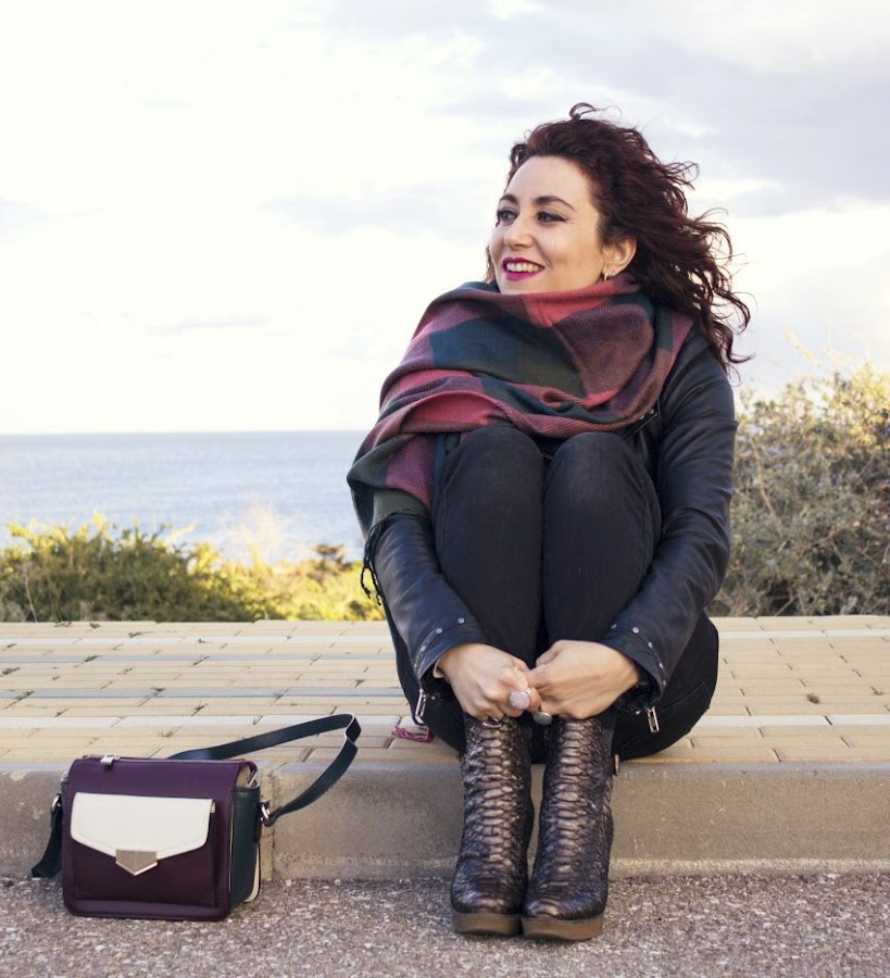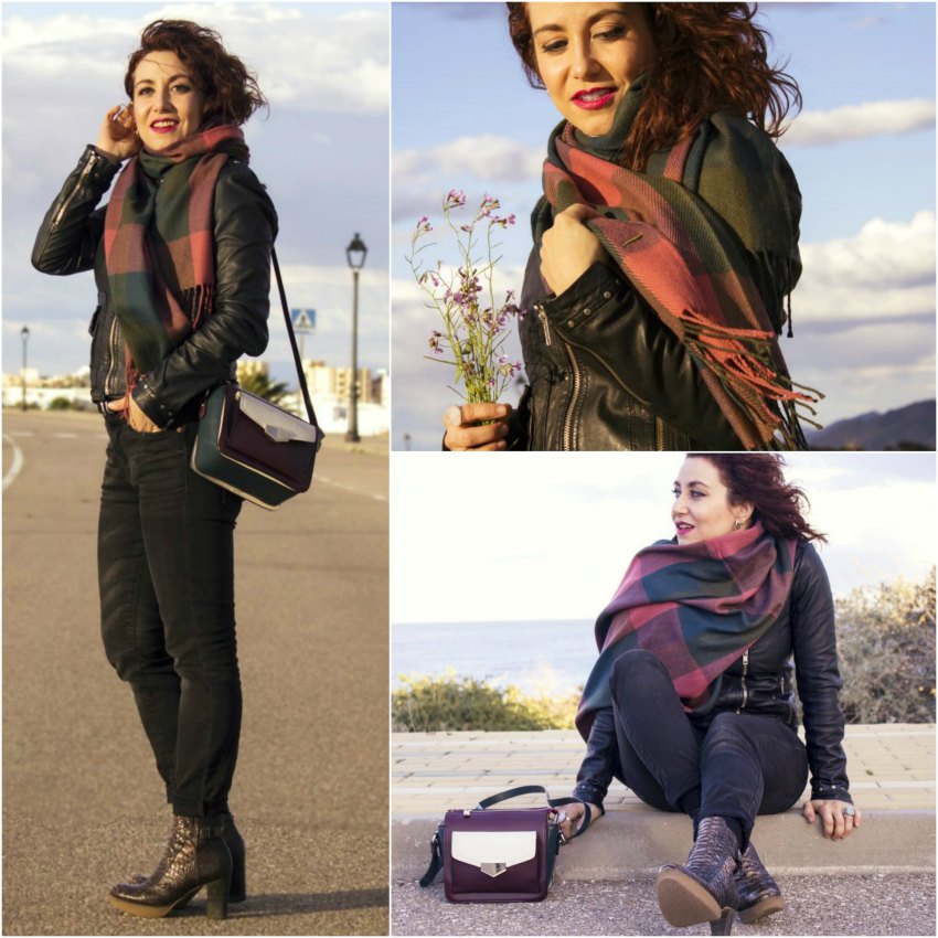 Hola a todas, os presento un look perfecto desde estos días tan fríos y ventosos ideal para hacer frente a este recién entrado invierno, El viento llega helado puesto que ha nevado por las sierras cercanas y un remedio tan estiloso como efectivo es recurrir a una maxibufanda de colores (aquí) una tendencia que desde el año pasado, pega muy fuerte. Me ha gustado mucho ésta porque puedo convertir un look casual en un look muy femenino y hacer un juego de contrastes con el labial, ya que los distintos tonos rosas y fucsias combinan muy bien.