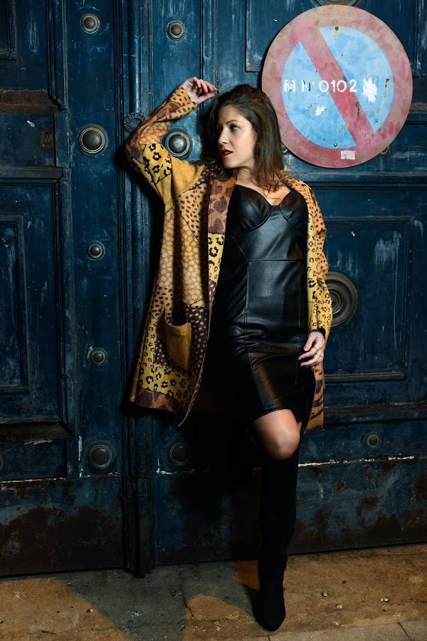 Por si el look anterior no os convenció del todo y para que tengáis más donde elegir, Glück Huelva y yo os proponemos este segundo outfit con este vestido de tirantes en cuero negro que tiene un toque muy cañero y que hemos combinado con un abriguito de diferentes estilos de animal print que le da un aire salvaje y al mismo tiempo más sofisticado.