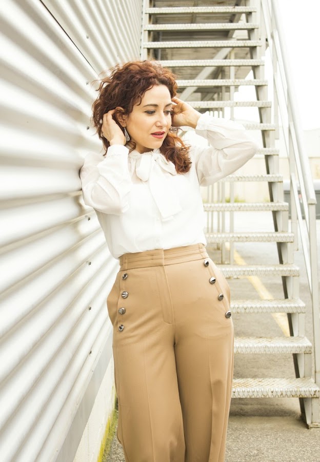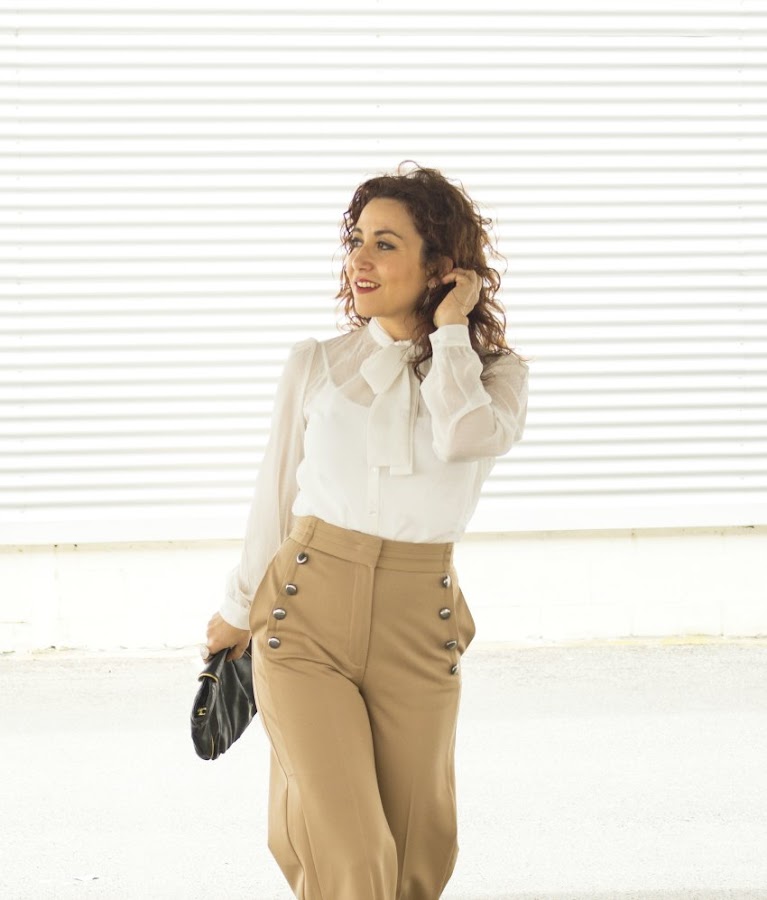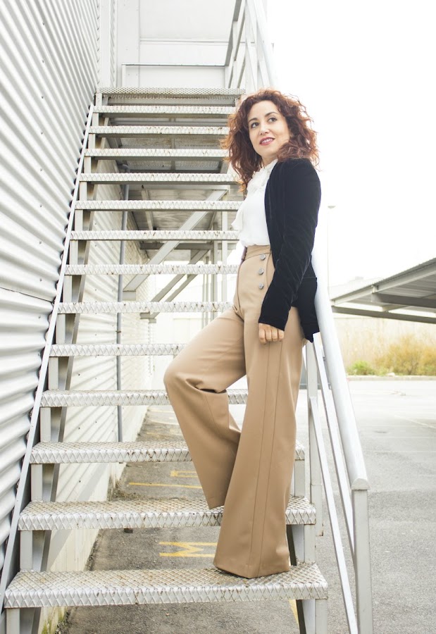Hola a todas. Ya sabéis que las líneas retro se han instalado en el mundo de la moda y los pantalones de pata ancha y abotonaduras son una prueba de ello. Éstos en color camel me van a dar mucho juego tanto en estos días de invierno como en primavera. La cintura alta es otro aspecto muy favorecedor, ya que estiliza la silueta, resalta la cintura, estira las piernas (no se puede dar más por menos X-D)