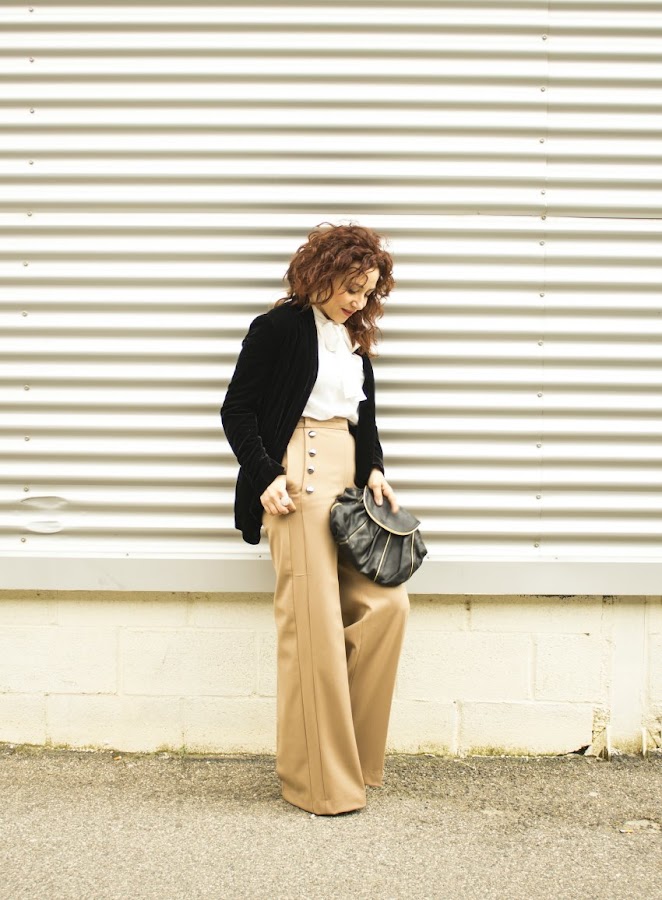 Hello everybody. You know that the retro lines have been installed in the fashion world and wide pants and button up ornaments are proof of this. This exemple in camel color will give much play in these winter days and spring time. High waist is another flattering point that stylized silhouette, highlights the waist, stretch your legs (you can give more for less X-D)