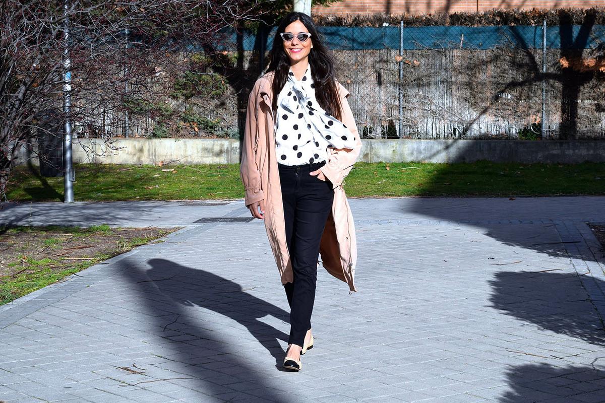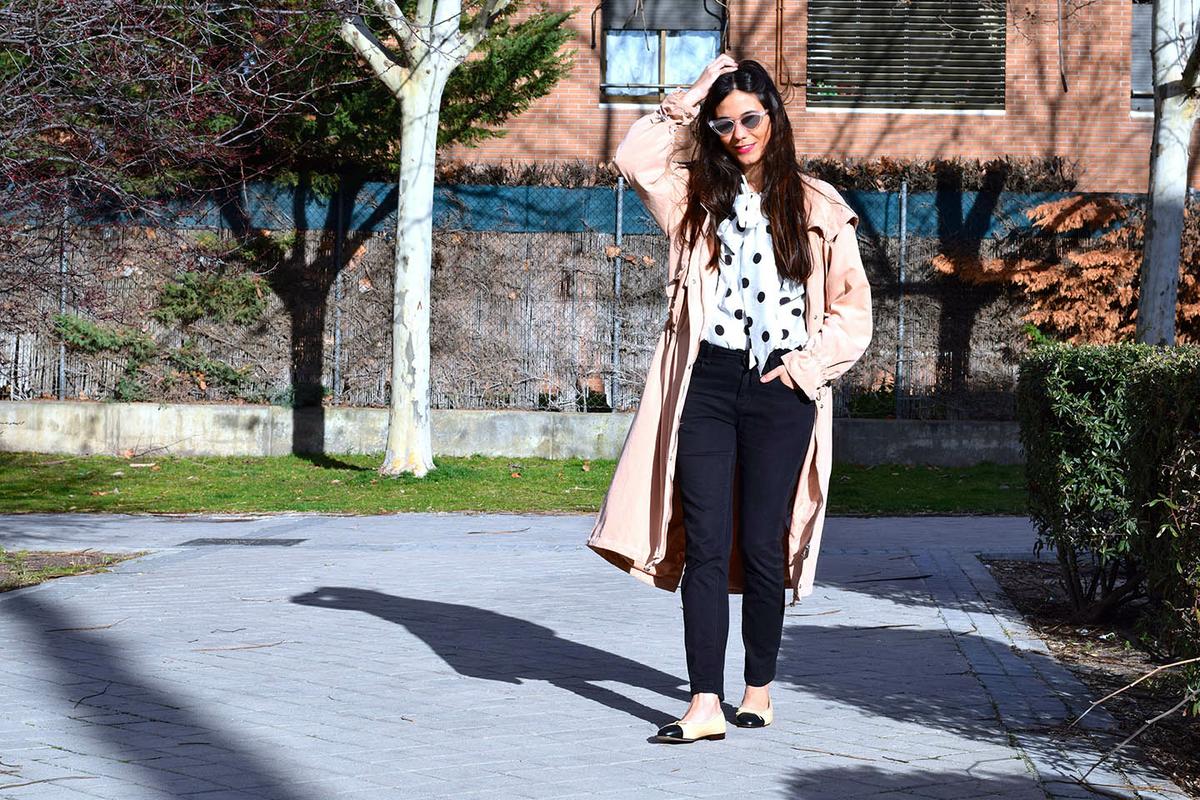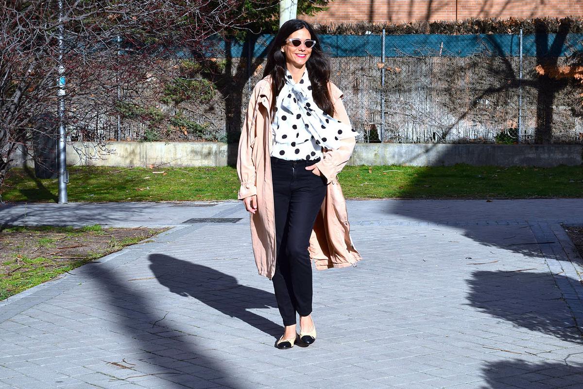Como veis en el look de hoy llevo unos jeans y una camisa de lunares, un look muy cómodo y estiloso para pasar todo el día fuera de casa con el bebé. En los pies no me quito las zapatillas o las bailarinas (en las fotos estreno mis bailarinas de Chanel que por fin están en mi armario después de desearlas durante muchos años). Las parkas o gabardinas son una de mis prendas favoritas porque me parecen muy estilosas. Y esta primavera, las gafas de sol de moda son las de estilo años 50. Son muy divertidas y lo mejor es que son muy favorecedoras, le quedan bien a todo el mundo