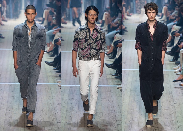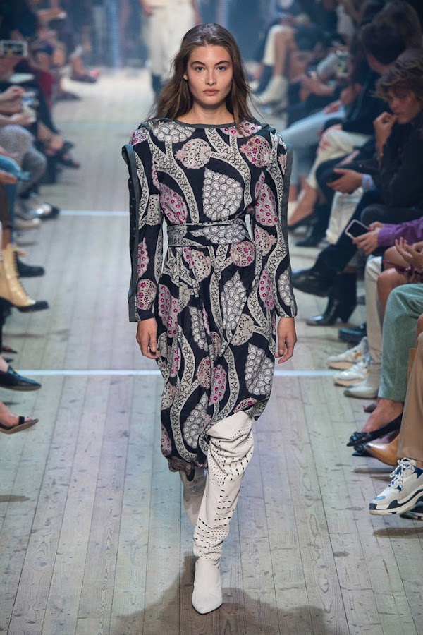 La colección de Isabel Marant para esta primavera tiene su característico estilo atemporal, ponible y práctico. Incorpora brillos y lentejuelas inspiradas en la época disco de los años 70, monos y volúmenes en las partes de arriba, así como total looks metalizados o vaqueros. Mantiene siempre su esencia boho que es una de las claves de su éxito.