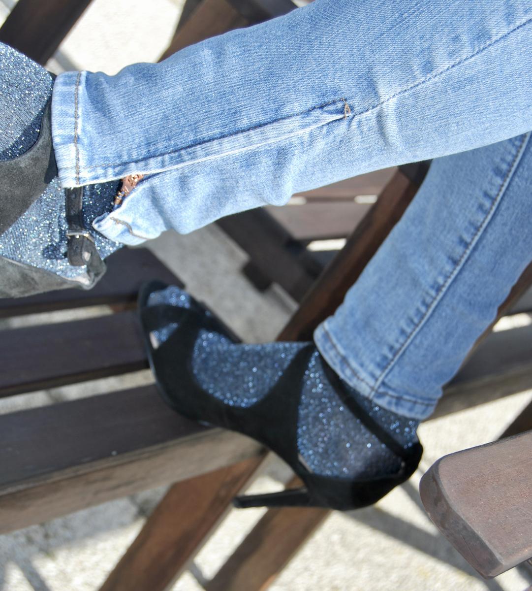 Modeli Christmas basado en vaqueros, camisa con detalles en puños, cortita por delante y larguita por detrás, calcetines brilli, brilli, que me encantan y sandalias de tacón (también me encantan las sandalias con calcetines y con medias) y para terminar el Modeli Christmas… puedes combinarlo con una chaqueta de terciopelo de cualquier color o un abrigo de pelo (que también me encantan) de algún color chulo o combinado con mil colores, y te aseguro que tendrás un Modeli Christmas… mas chulo que nadie. ¡Hazme caso!