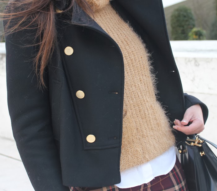 Aparte de los ya mencionados pantalones, el look de hoy incorpora mí nuevo Jersey Mohair de Choies, al pedirlo pensé que sería mucho más largo ya que en la foto así sale sin embargo poco más y es un top! Eso sí me encanta como queda! Creo que me dará mucho juego este invierno. También quería enseñar mí abrigo negro, os había comentado que era mí principal deseo en estas rebajas, tenía muy claro que debía ser corto y con botones dorados... para variar parece que Amancio leyó mí mente y el primer día de rebajas a primera hora de la mañana me traje a casa esta monería. Nuevamente aparece mí bolso estrella, por más que lo utilizo no me canso de él me parece perfecto. Bueno ¿qué os parece mí propuesta de hoy?