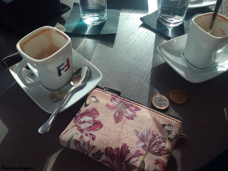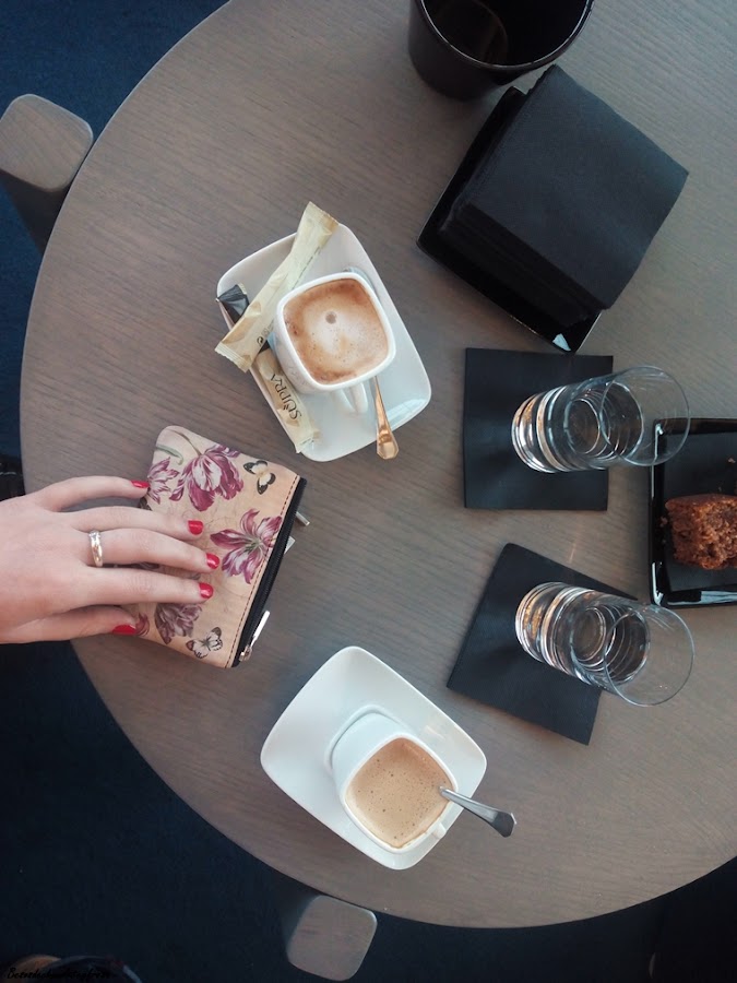 En cuanto al post os muestro mi monedero de piel de estampado como el bolso que os enseñé hace un par de semanas en el blog y que también os muestro hoy, tiene doble cremallera apta para llevar billetes, monedas e incluso tarjetas. Un tamaño cómodo para ir a hacer la compra o tomar un café como aproveche yo y como os muestro en estas fotos.