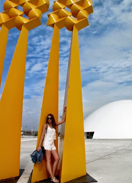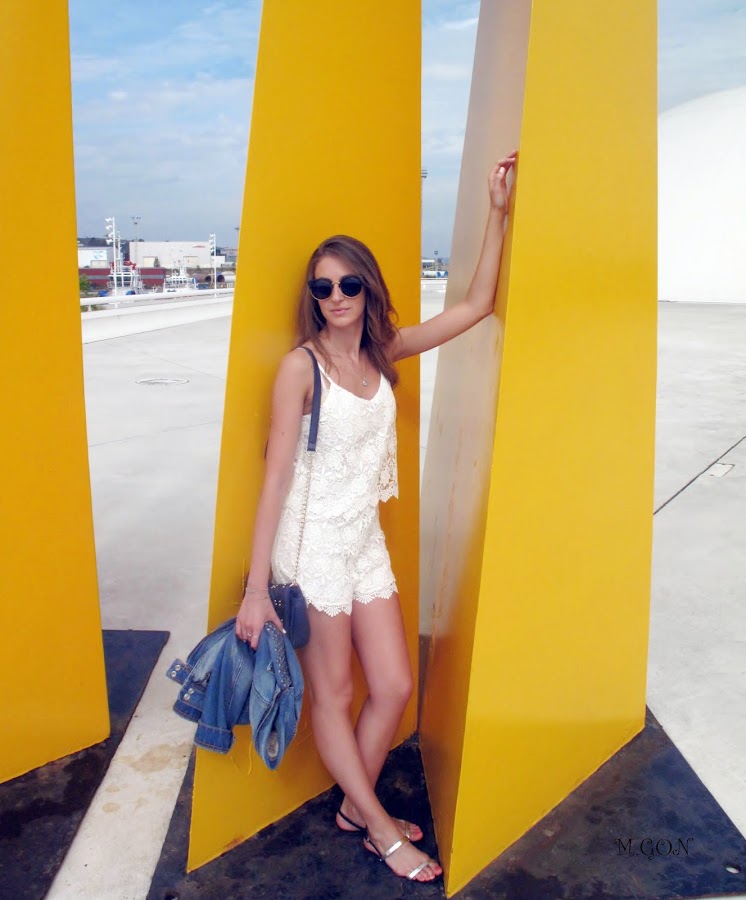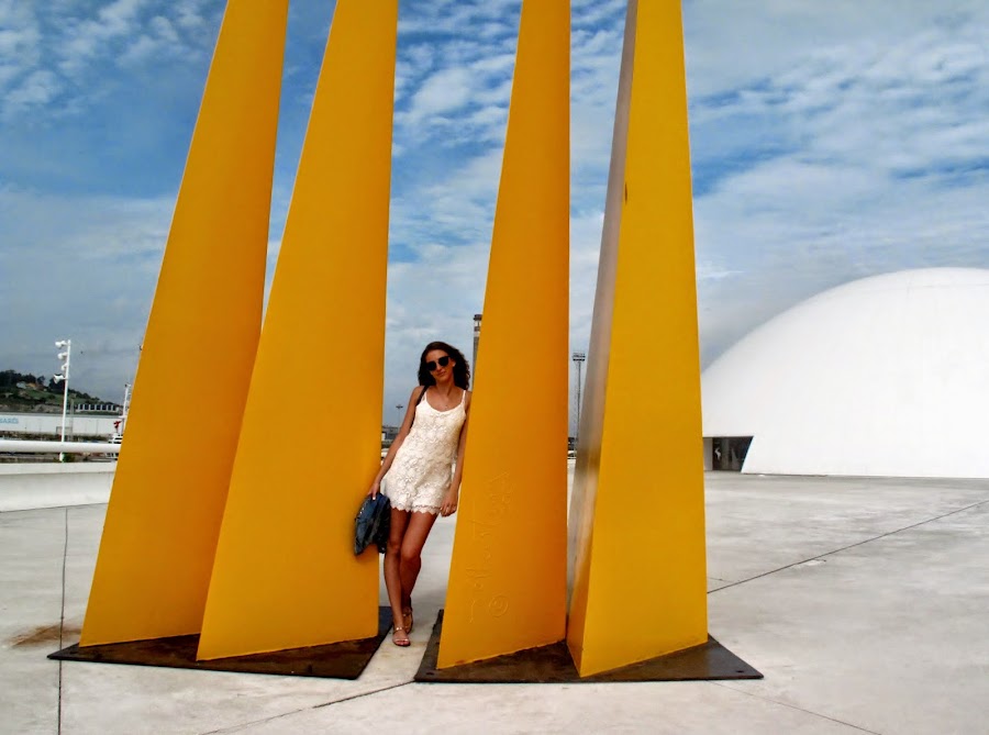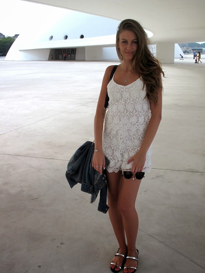 En un anterior post look vestido blanco os dije que había ido a un casting, pues ¡Me cogieron! y desfilo el dia 18 en Avilés en un evento organizado por Luis Macavi y Loreal, y ayer fui a los ensayos, reencuentro con amig@s de la agencia Rassims, lo pasamos muy bien y os dejo nuevamente fotos en el Niemeyer con un look entorno a un mono de encaje de Zara.