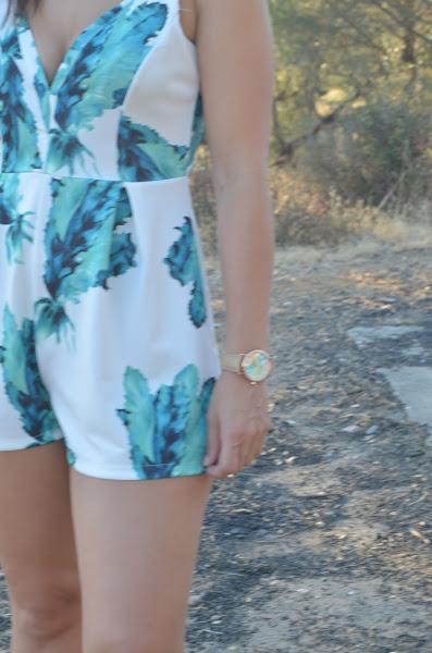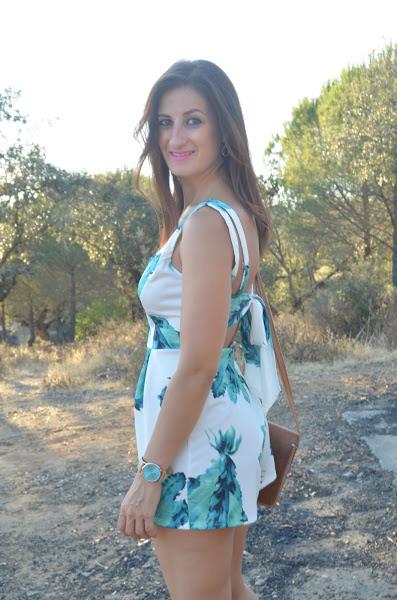 El mono que he elegido esta vez es un mono de CHOLLOMODAS, su color y su estampado hacen resaltar el bronceado y su escote en la espalda con lazada es una preciosidad.