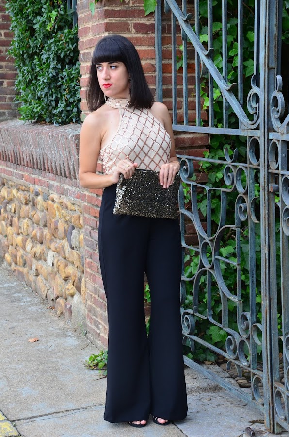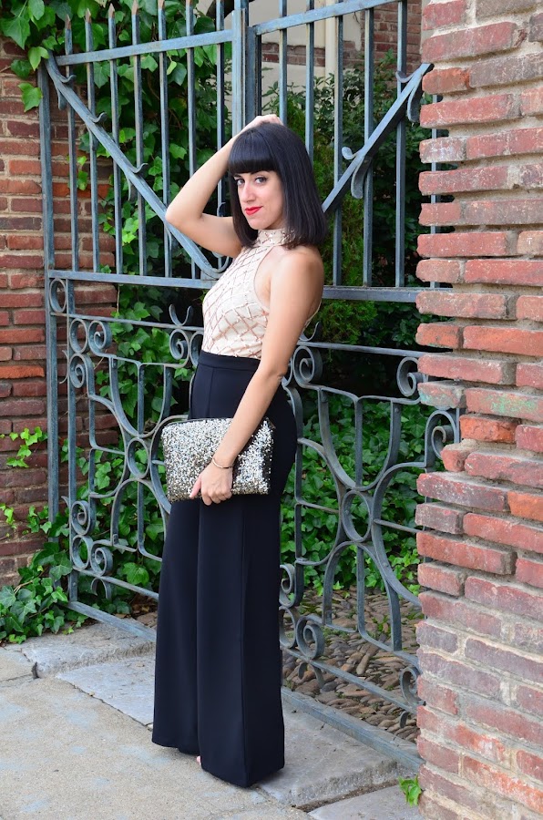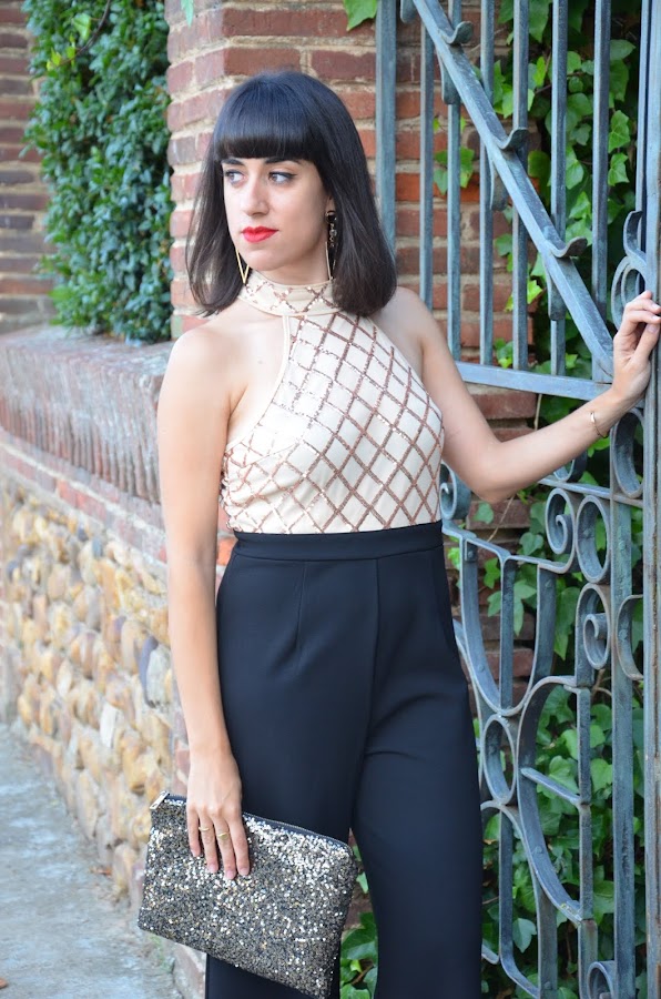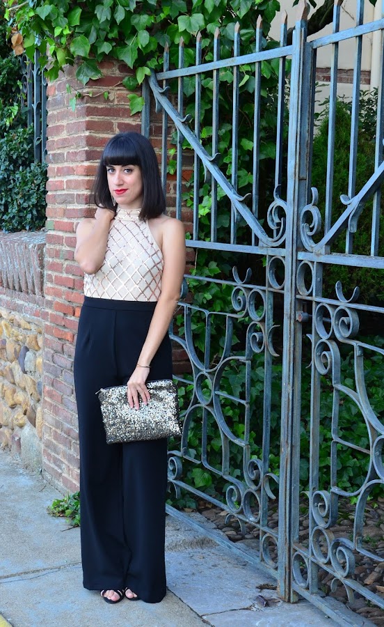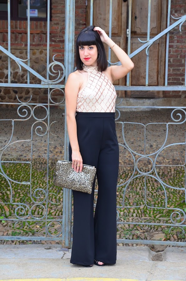 Hoy os quería enseñar la prenda estrella de mi último pedido a Shein, este precioso mono negro con top de lentejuelas doradas y cremallera en espalda del mismo color.
