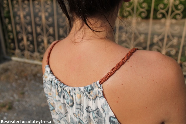 Hoy os enseño un look con un mono étnico con tirantes de cuero trenzado que acaban en la parte delantera en forma de hoja. Súper fresquito y cómodo para días de calor con un fondo de escenario de cuento a los pies de un Pazo. Lo combiné con sandalias joya y capazo azul marino.
