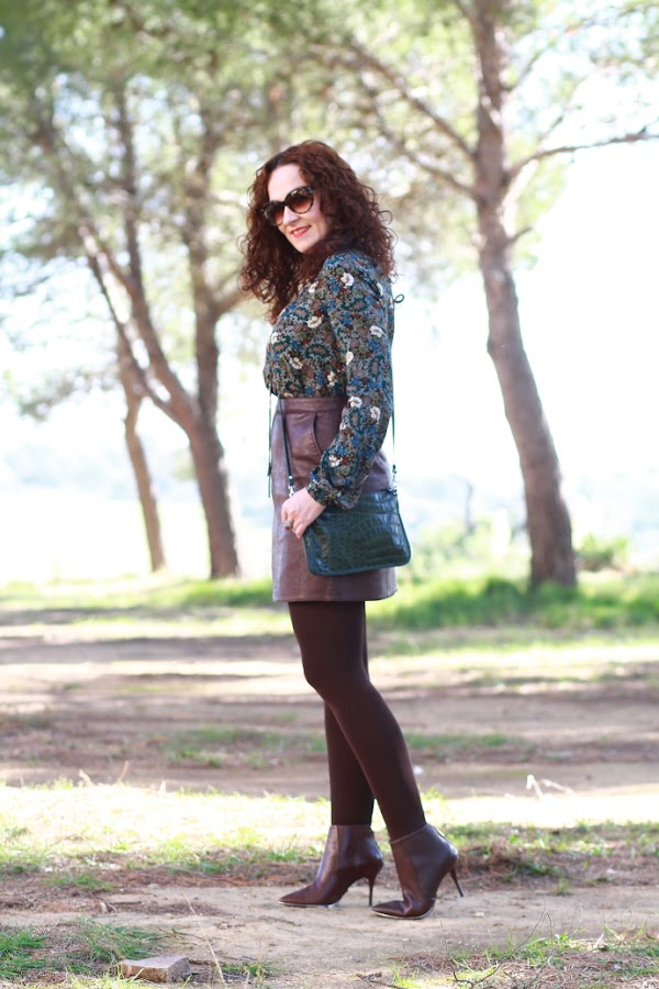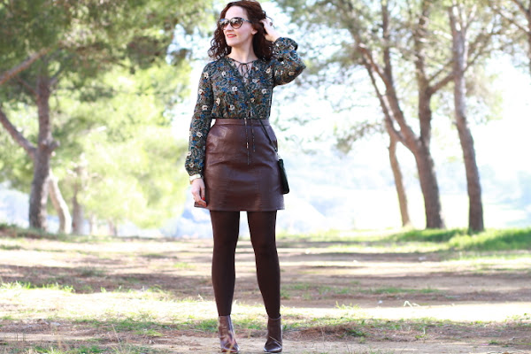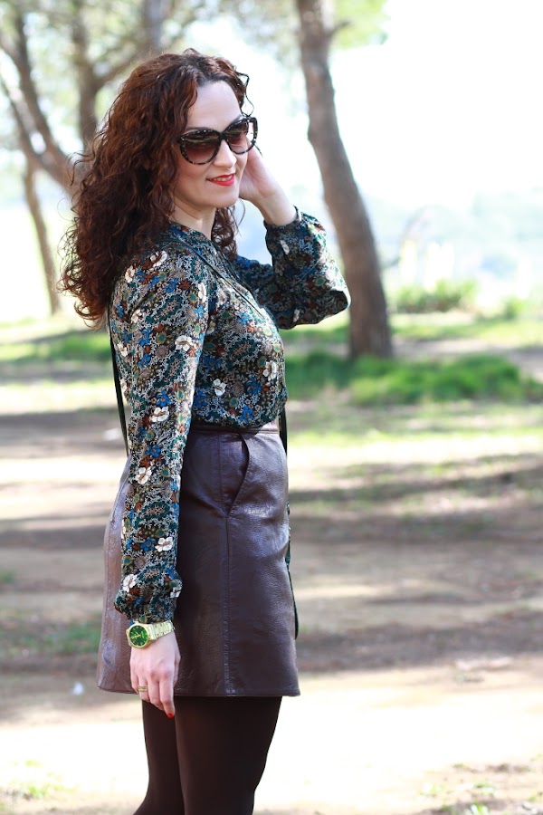 El look de hoy es un poco especial por la combinación de las prendas. Así a simple vista no se ve nada raro o diferente, pero ¿qué me decís si os digo que está compuesto por un mono de flores y una falda de polipiel?. El día que me compré ambas prendas cuando estaba en el probador pensé ¿y si me pongo la falda encima del mono?. Lo probé y como el mono es de pantalón corto no se nota así que el combo me encantó y como veis ya lo he llevado junto.