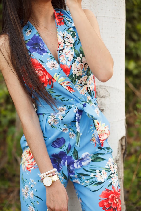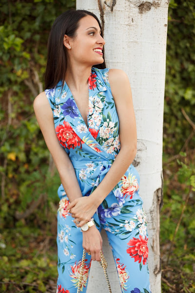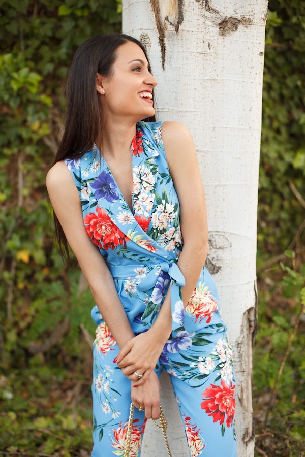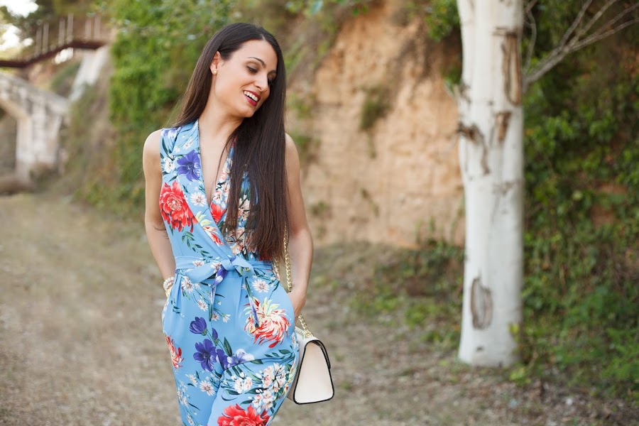Además de por su colorido estampado floral, me pareció muy original por su escote cruzado con solapas estilo esmoquin. Se ajusta genial ya que lleva cremallera en la espalda y el cinturón a modo lazada hace que marque la cintura. Sencillamente, ¡me encanta!