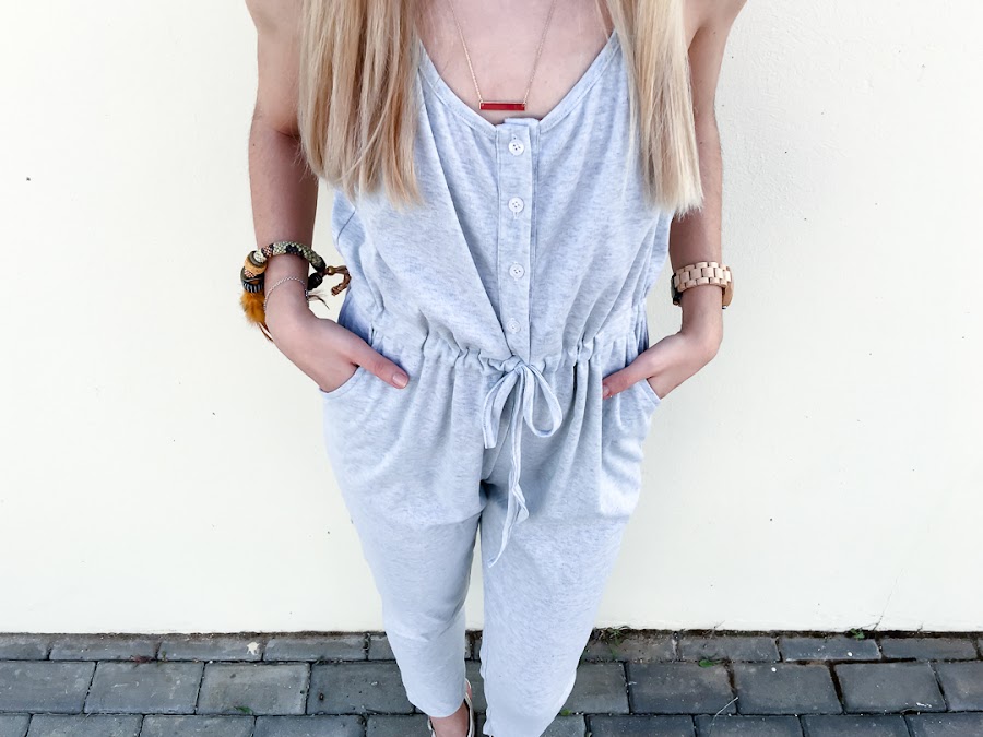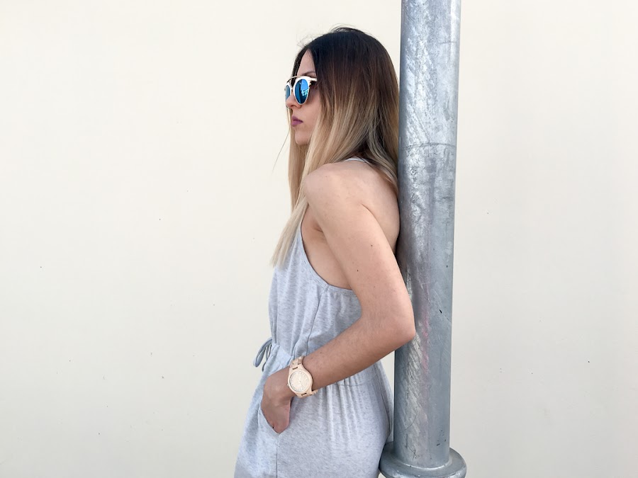 El outfit es muy sencillo, con un mono de ROSEGAL, de color gris, botones en el pecho y una goma fruncida en la cintura que puedes apretar a tu antojo. Es muy cómodo y fresco. Creo que lo usaré mucho este verano!