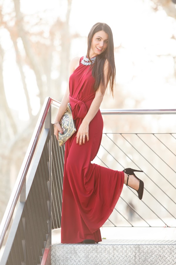 La primera y una de las que más me gusta es este precioso jumpsuit rojo multiposición de PREMIUM BOUTIQUE (Disponible también en negro). Elegante, muy económico (19,95€) y con infinidad de combinaciones como podéis ver en la siguiente imagen con algunos ejemplos.