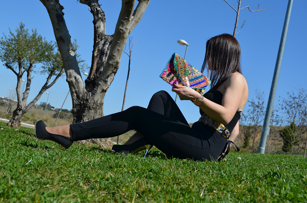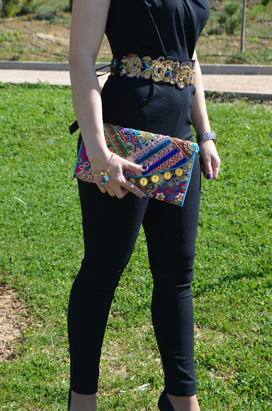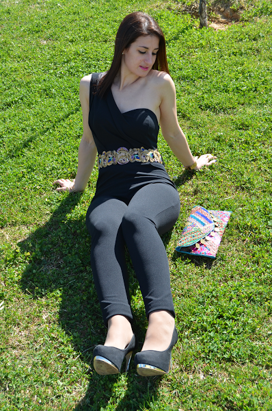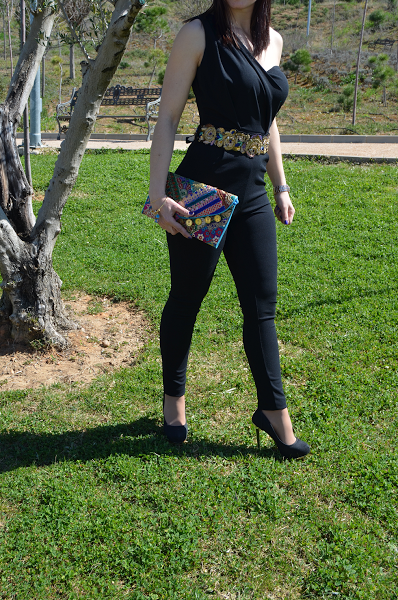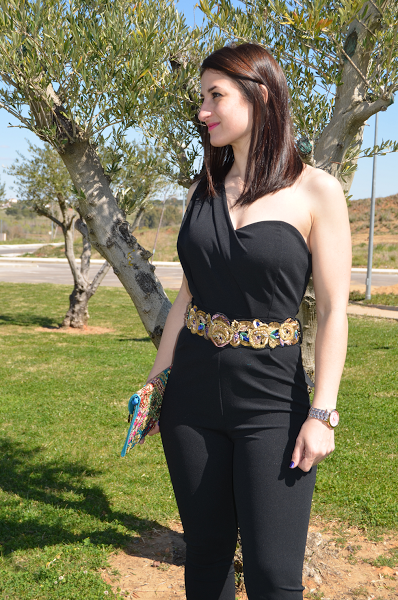 Quien me sigue en instagram sabe que mi prenda preferida son los monos!! siii no lo puedo evitar, veo uno y es como un flechazo, y este de la tienda SWEETWOMANSHOP (muy en la línea de bueno, bonito, barato y buen servicio) es tan bonito, elegante y cómodo que no me pude resistir. Viene con otro cinturón, yo quise combinarlo con este de la temporada pasada de zara para darle un toque diferente, el cluth boho para darle color y zapatos negros. También me puse una blazer en color crema porque hacía fresquito.