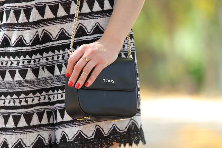 Lo combiné con mi nuevo bolso de Tous, que además de ser precioso, me gusta sobre todo porque fue un regalo sorpresa que me hizo mi marido la misma semana. Me conoce tan bien que dio en el clavo con él.