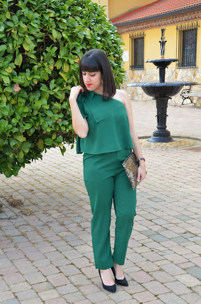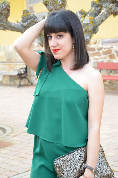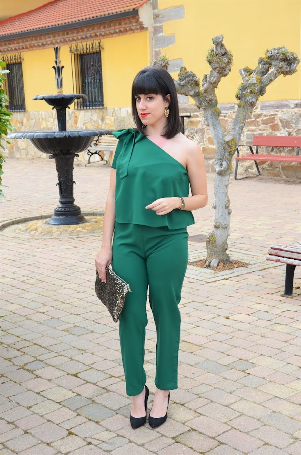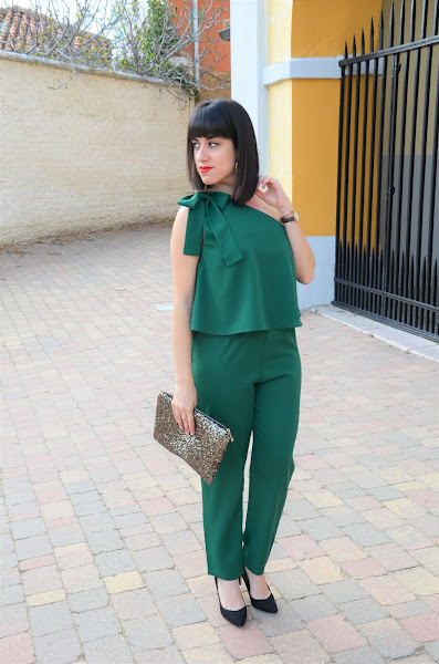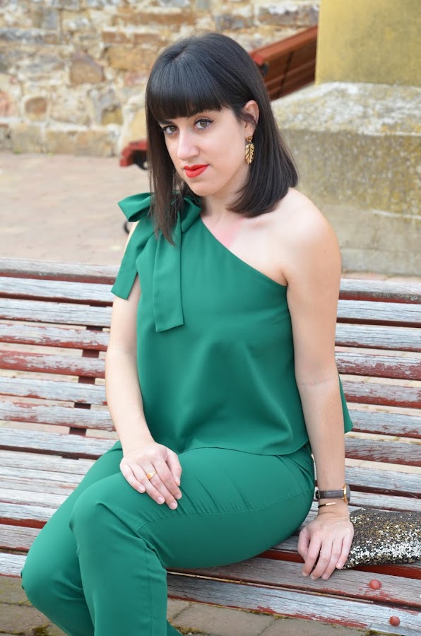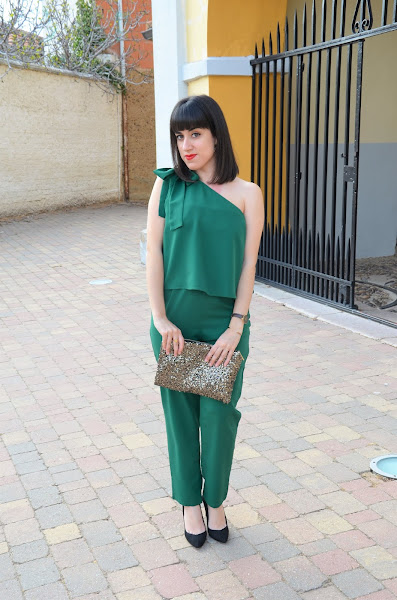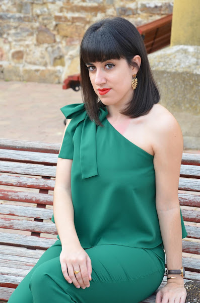 En estos días de procesiones, roscas de pascua y limonadas he escogido para uno de mis looks este mono verde, asimétrico y con lazada al hombro de Shein.