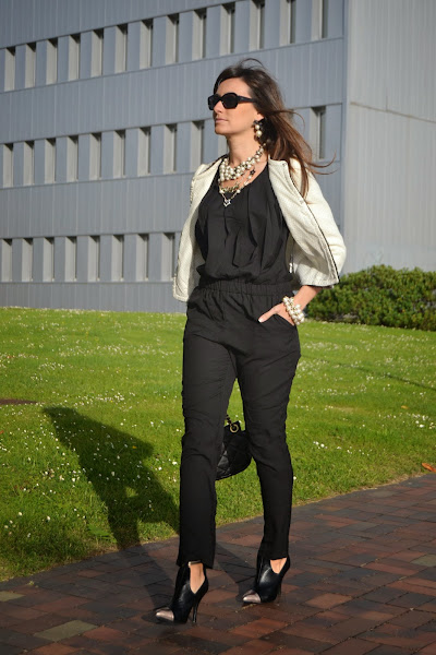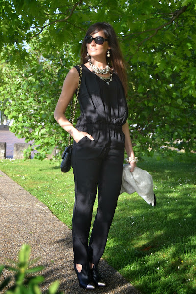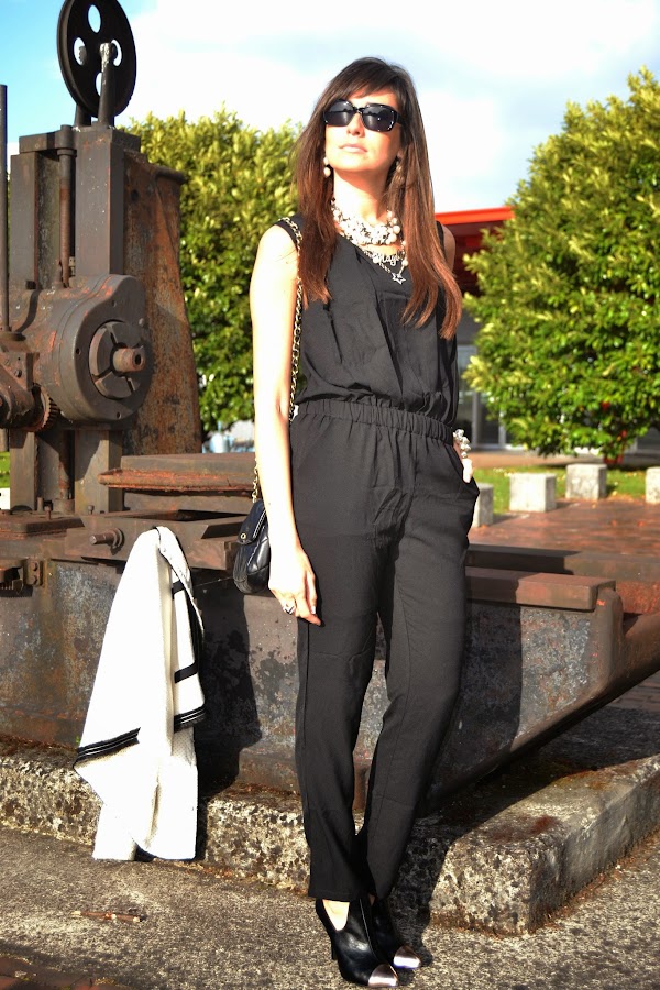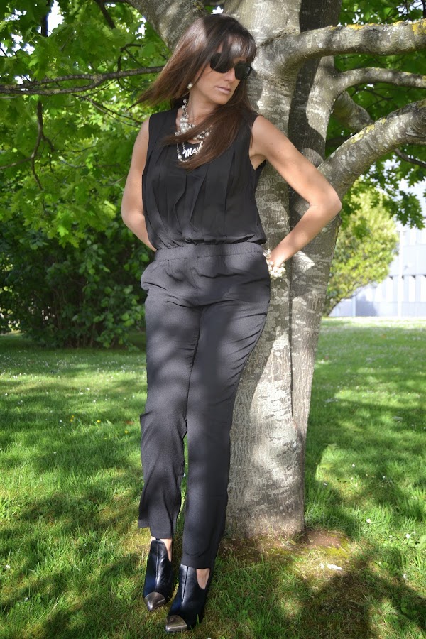 Si recordáis, el otro día os prometía aquí enseñaros mis gafas de sol con estampado de lunares blancos sobre negro en las patillas y hoy, por fin, os acerco este coqueto modelo de la firma MaxveR, disponible en Navarro Óptico, que he decidido estrenar junto con mi nuevo jumpsuit negro de MotuFashionque aun no os había mostrado en Mery Trendy. Un sofisticado mono con un corte muy chic para ir cómoda en todos mis eventos del día a día que he combinado con calzado y complementos más que de sobra conocidos por todas vosotras, pues ya los he lucido en bastantes ocasiones en el blog.
