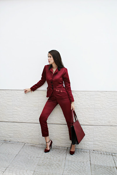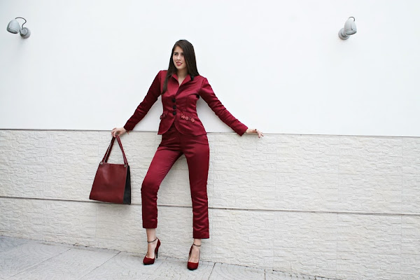 Hablando de las mujeres, el look de hoy me hace sentir poderosa y es algo que no usaría a diario. Es un outfit bastante arriesgado y muy vanguardista, estamos hablando de un conjunto de sastre que entalla perfectamente a la silueta de la mujer en un color de por sí que es bastante dominante así que es algo que jamás te hará pasar desapercibida, es de la diseñadora NATHALIA FORKIN.