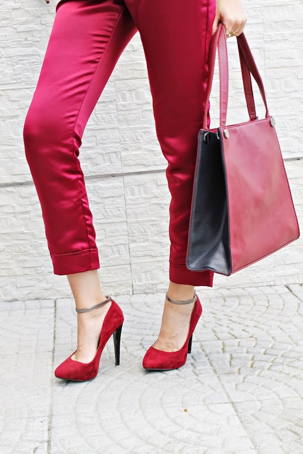Tenía muchas ganas de hacer un look totalmente monocromático y nada mejor que este todo en color vino. La cartera es de balu accesorios y es una de mis preferidas (fue un regalo de Joshe) y los zapatos como ya les he dicho son mis tacones amor/odio ya que los amo pero son demasiado incómodos :(. No quise recargar mucho así que nada mejor que zarcillos negros y anillos dorados para terminar de armar todo el concepto.