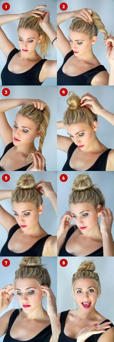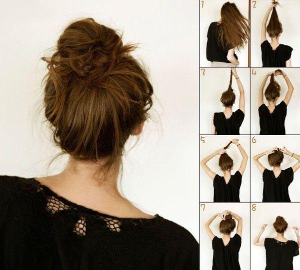 Tutoriales con fotos de paso a paso para lograr un moño alto despeinado.