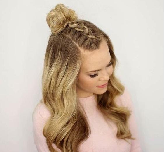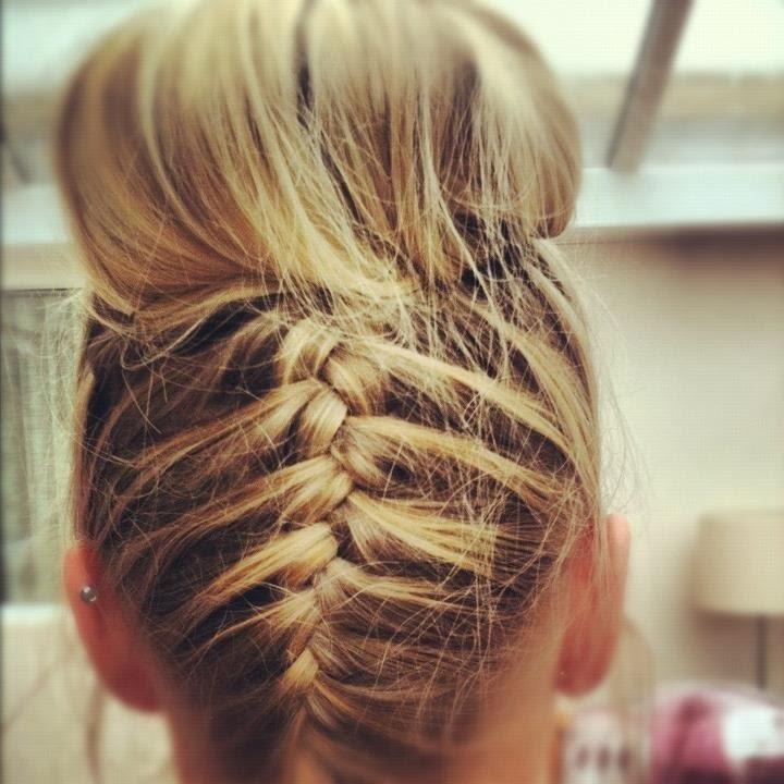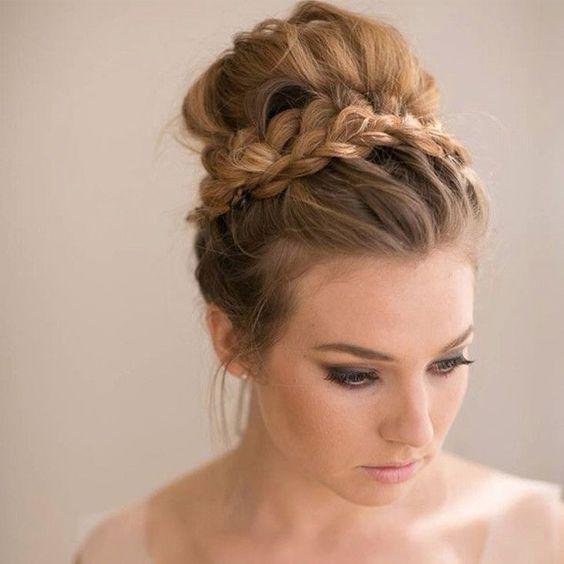 Otra variante muy chula, es acompañar los moños altos con trenzas.