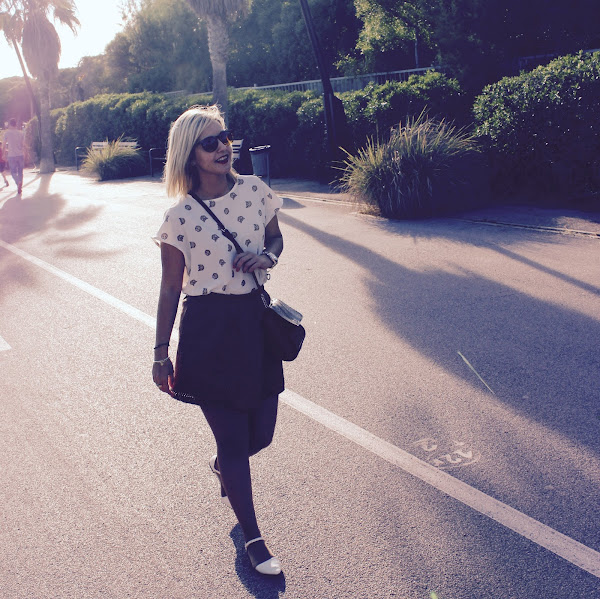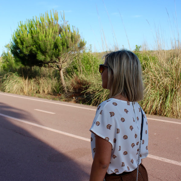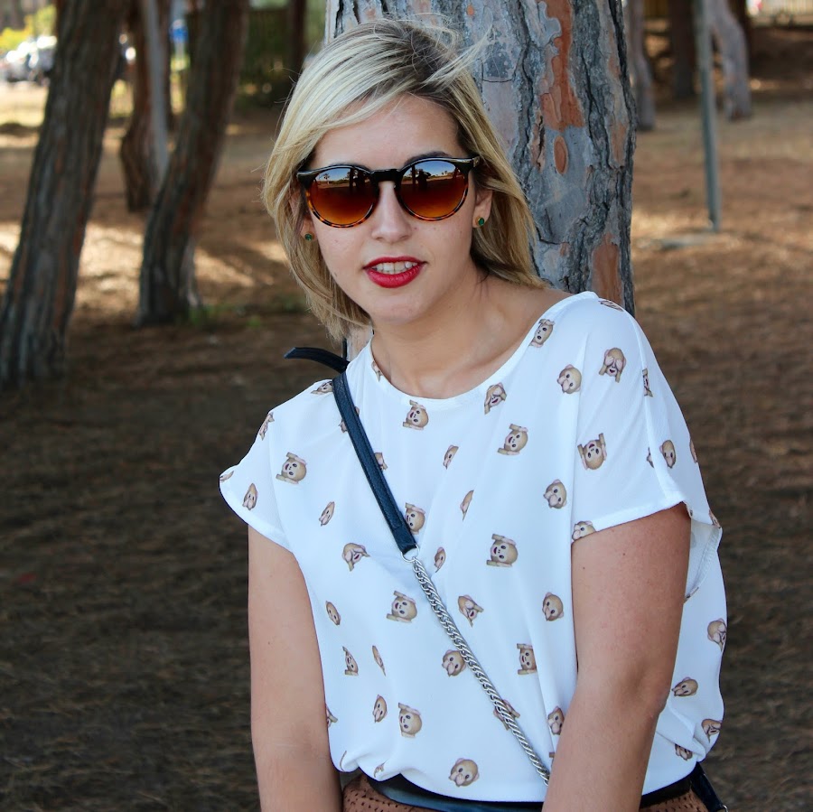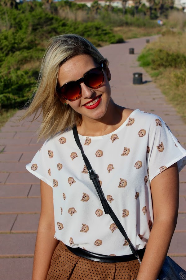 Today I show you the outfit that I wore to go to a meal with the family. A comfy and feminine outfit. I wore my new white blouse with cartoons of the monkeys of the WhatsApp that I think that its very funny, dont you? I wore it with a camel suede skirt, white flats and a bag with snake print.