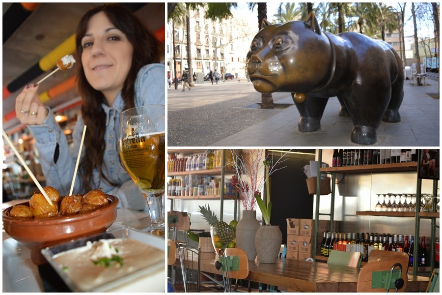 On Saturday I found one of those places that you go back. This is a restaurant located in the building of the Filmoteca de Catalunya, near the Rambla del Raval. On the way there, we stopped to see the great Cat by Botero, a beautiful sculpture that has become an icon of the city.