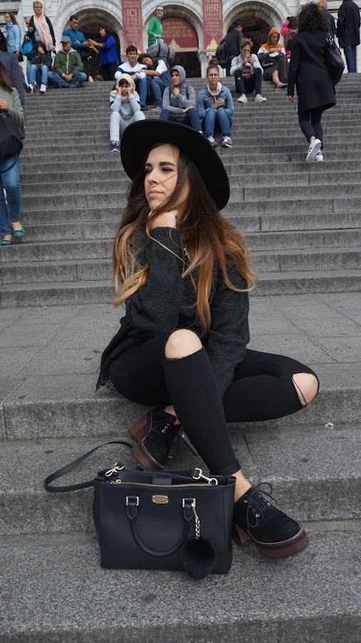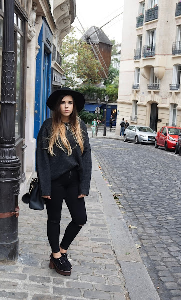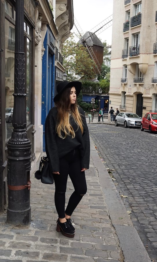 El de hoy es lo que me puse el día que visitamos la zona de Montmatre, una de mis favoritas. Hacía bastante frío, así que me decanté por jeans, jersey oversize, bluchers y sombrero. Todo en negro, muy tipo yo.