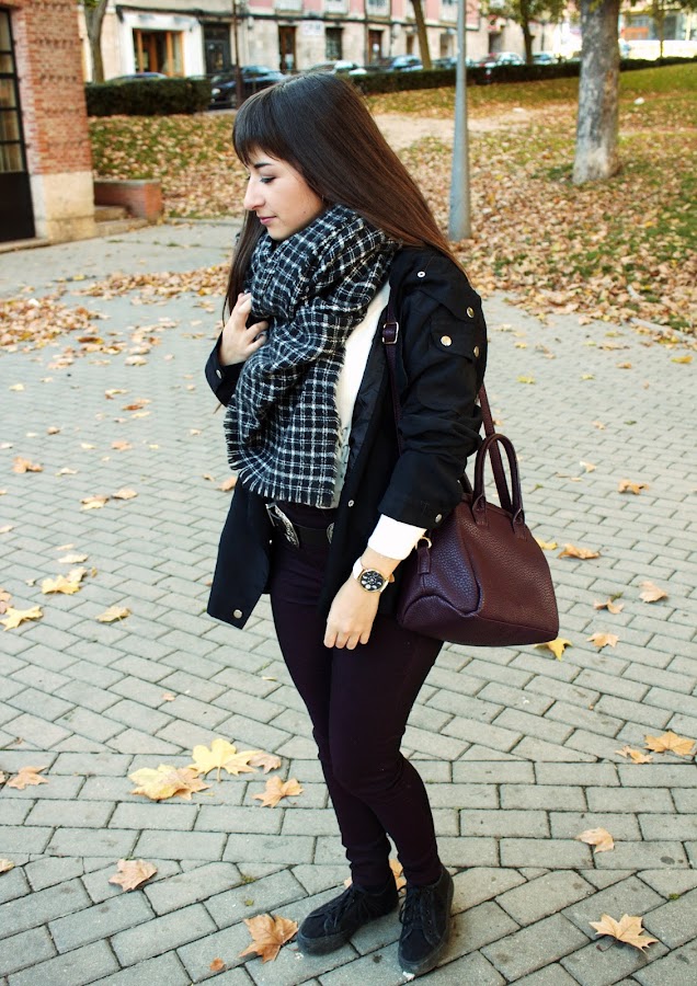Jumper: Zaful // Watch: Zaful // Scarf: Zaful// Velt: Zaful// Pants: H&M // Jacket: Banggood// Bag: Bershka // Shoes: Lefties // Earings: Primark