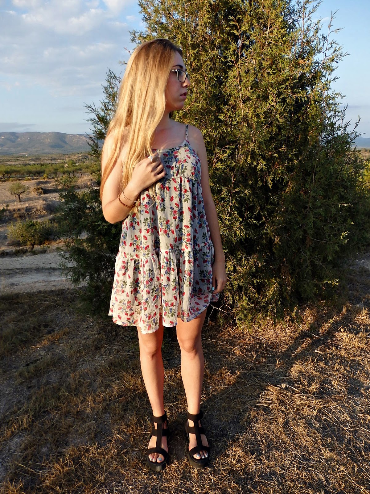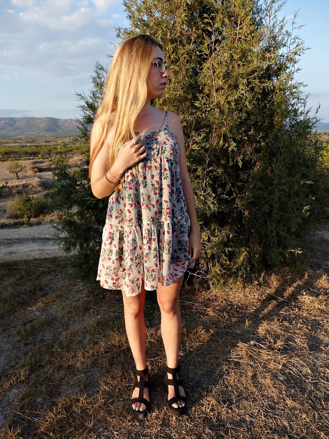Como ya he dicho varias veces, para mi en verano la comodidad y el estar fresquito es lo principal, y este vestido lo reúne todo. En el outfit que os enseño lo he acompañado (como se puede ver en algunas fotos) con una camisa vaquera, perfecta para cuando refresca por la tarde-noche, que le aporta un toque mas desenfadado e informal. De calzado llevo las romanas de plataforma, que también rompen con el estilo romántico del vestido. Como accesorios, solo llevo un anillo en color topo y plata, ya que me gusta que toda la atención se centre en el vestido