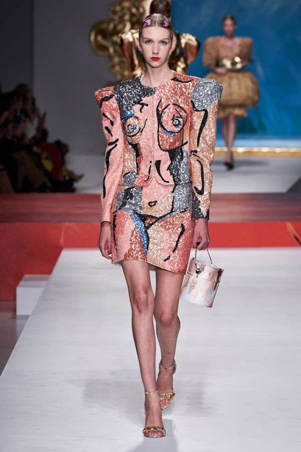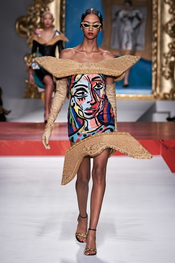 Las modelos de la talla de Kaia Gerber, Gigi Hadid o Irina Shayk desfilaron a ritmo de Rosalía luciendo los impresionantes trajes inspirados en obras de arte de Picasso, también en el folclore español, como por ejemplo, trajes de toreros o flamencas, guitarras, partituras, y figuras salidas de los cuadros.