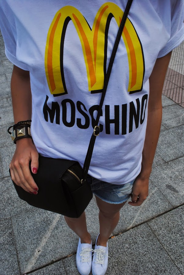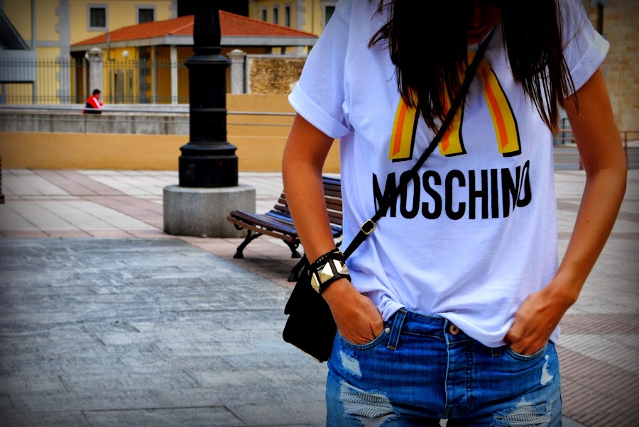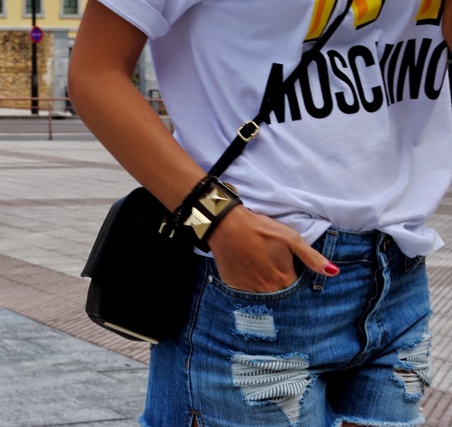 El look que os enseño es perfecto para un día como hoy, llevo unos shorts boyfriend que me tienen enamorada desde que los compré, consiguen dar un perfecto aire desenfadado y de arriba la preciosa camiseta de Moschino de la tienda "Keep calm trendy". ¡Muchos besos a tod@s!