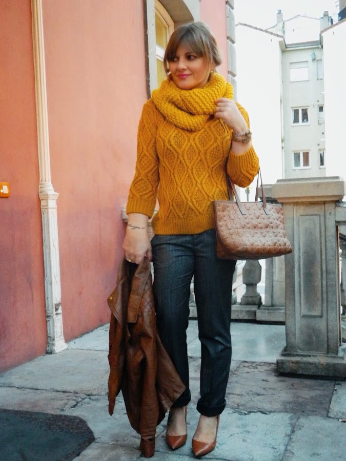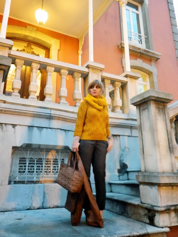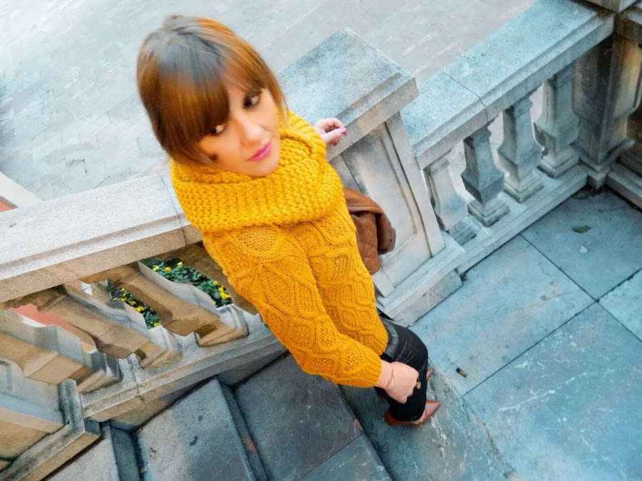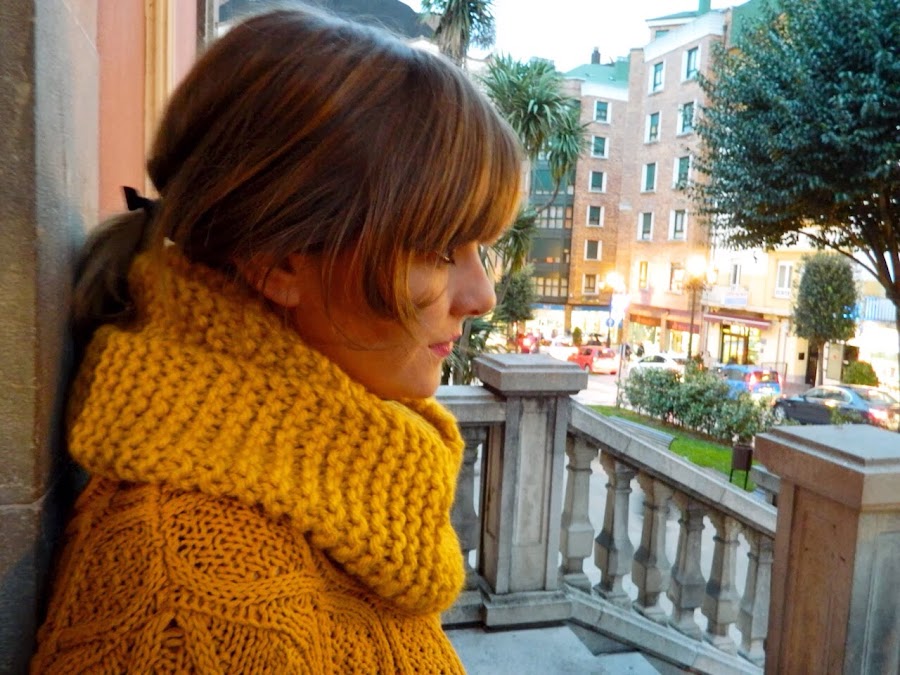 Hoy llevo un jersey con uno de mis colores favoritos últimamente, el mostaza, y un cuello hecho a mano por mi abuela, sólo por eso ya me encanta. Me resultan muy cómodos, yo no soy mucho de fulares ni bufandas, enseguida me molestan y no se que hacer con ellos, con este tipo de cuellos me siento cómoda y siempre están bién puestos.....me ahorro el estar todo el día colocandolos.
