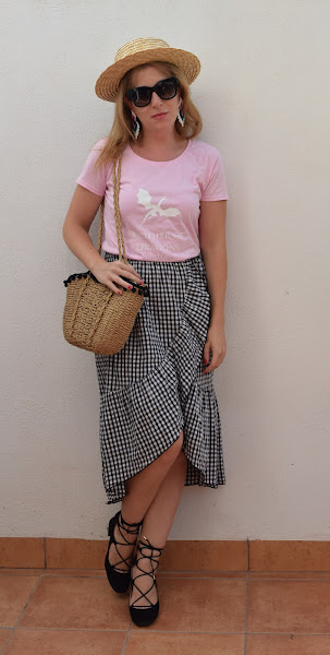 Acompañé la camiseta personalizada en rosa con esta falda vichy en colores blanco y negro; como no tengo nada de este estampado, otro más.