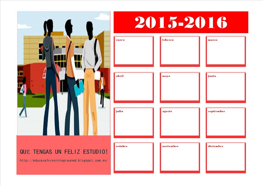Habréis visto que, a la derecha del blog puse hace unos días esta foto que veis arriba; un archivo descargable con el calendario escolar mes a mes; para los que no lo hayáis visto, ahora tenéis la oportunidad de descargarlo totalmente GRATIS, el calendario escolar 2015-2016 que realicé con muchas ganas y cariño.