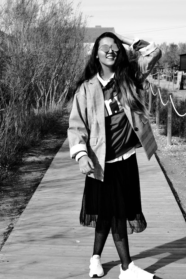 Otro must: el estampado de gales, ¿quién no ha querido hacerse con un traje formado por éste estampado? yo sigo queriéndolo. Pero primero tenía que haberme con la blazer, mis ganas explotaban ya. Y aquí está, mas oversize que nunca. Tan yo.