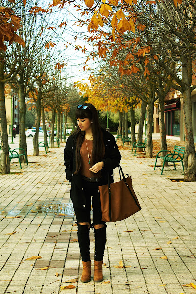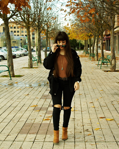 Me encanta el paisaje de esta época del año. Lleno de hojas por el suelo, inundado de colores marrones, amarillos y rojizos. Creo que hacen una combinación perfecta con el outfit de hoy.