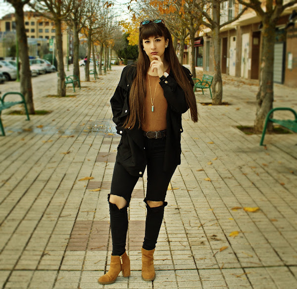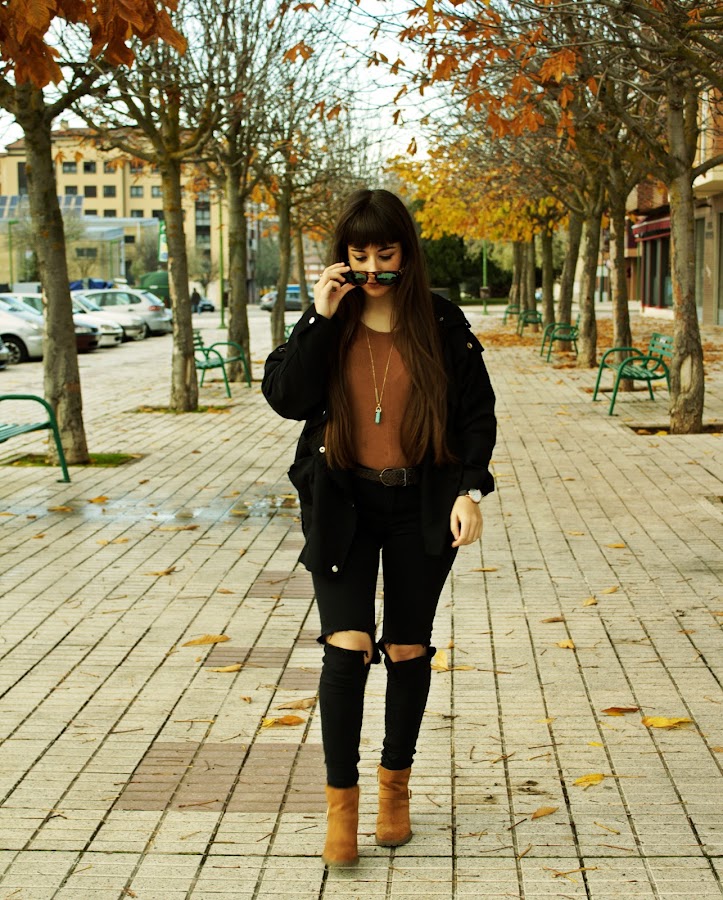 Boots:Bershka /// Jeans:Stradivarius + DIY /// Top:Stradivarius /// Coat:Banggood (same here) /// Glasses:Lefties /// Bag:*mom´s closet* /// Watch:Banggood (same here) /// Pendant:Born Pretty (same here)