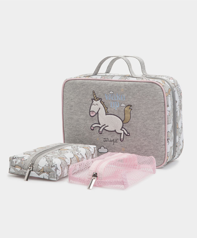 Piajamas, calcetines, neceseres, sudaderas...todo impregnado de frases positivas y unicornios.